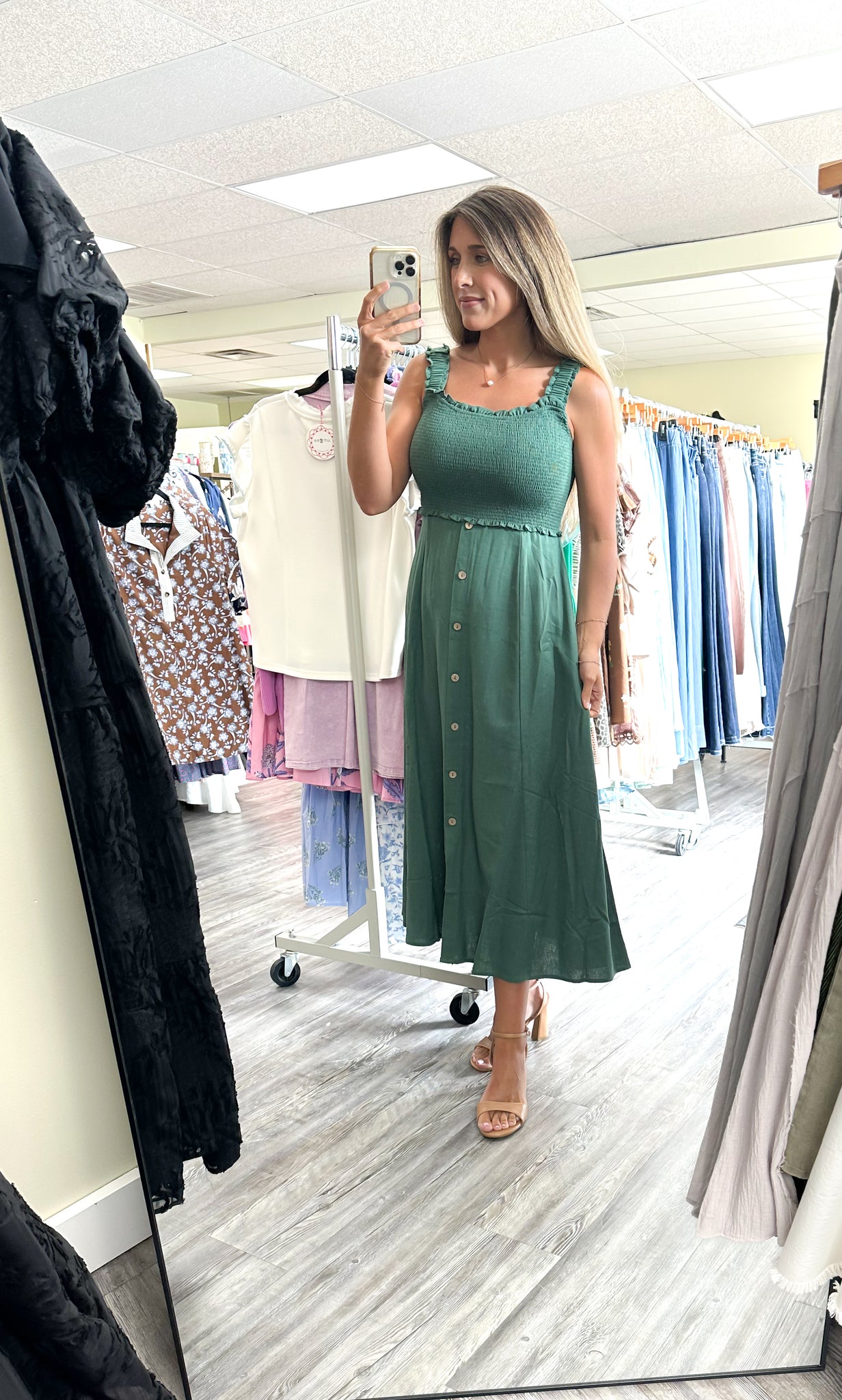 This gorgeous dress features a stretch bodice or the perfect fit! True to size.
